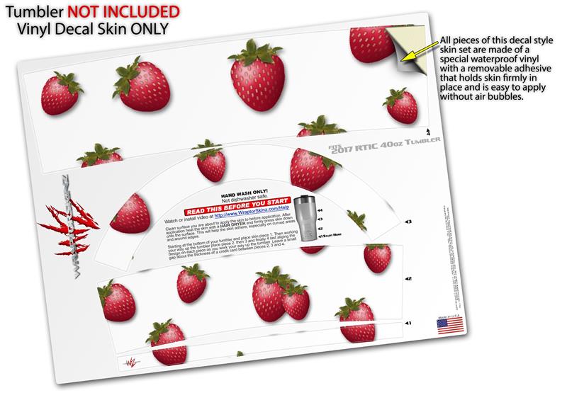 Skin Wrap Decal for 2017 RTIC Tumblers 40oz Strawberries on White (TUMBLER NOT INCLUDED)