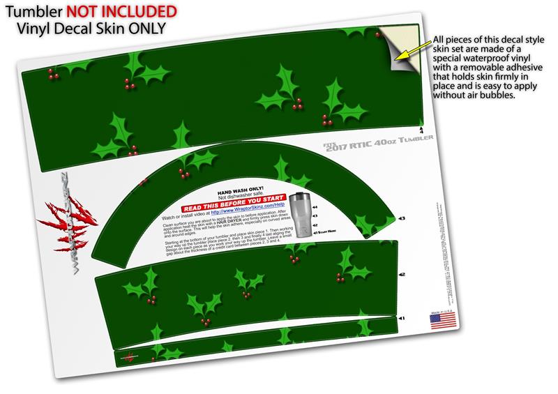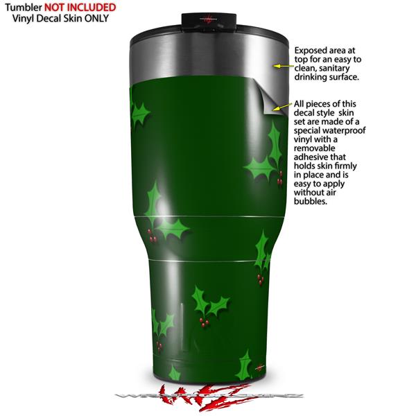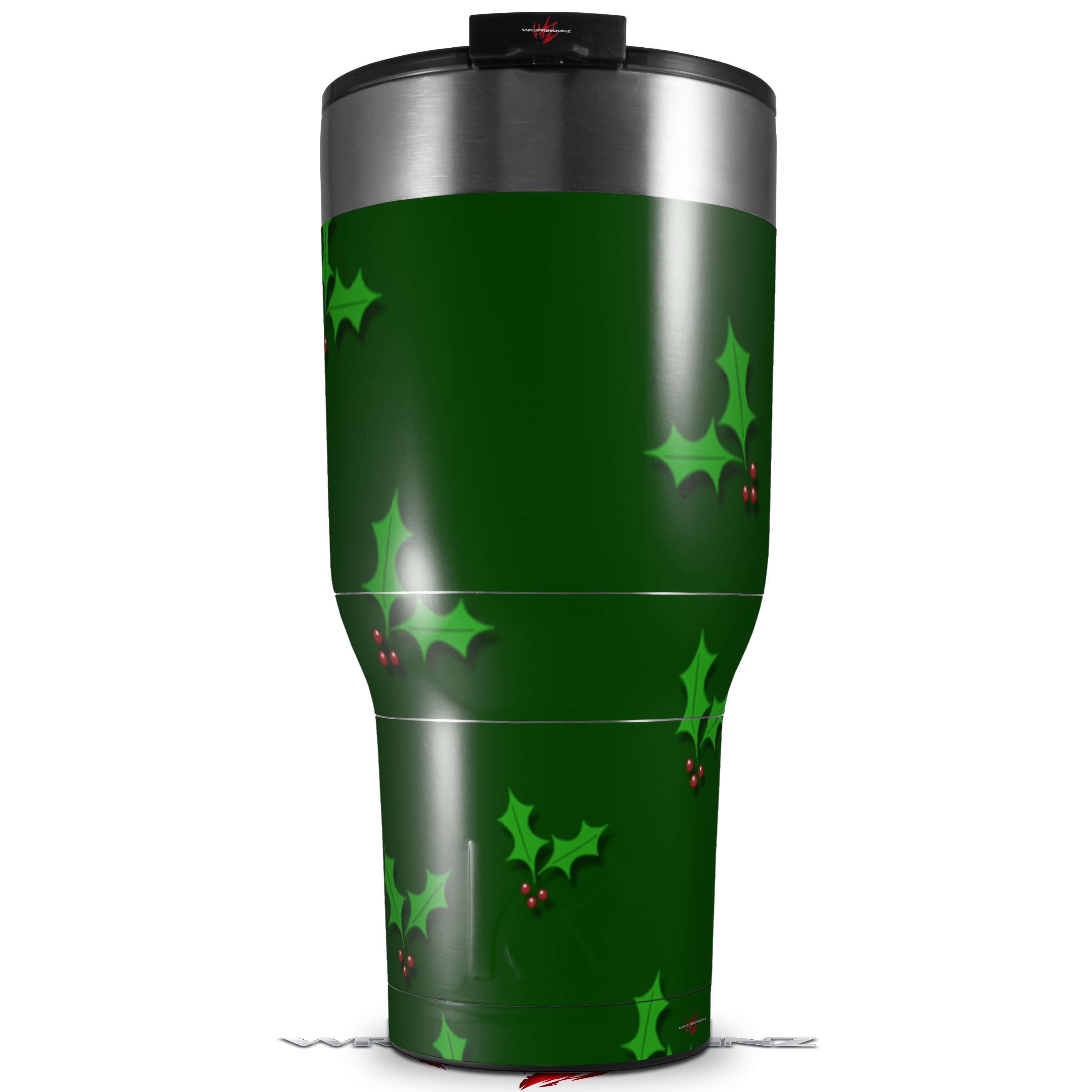 Skin Wrap Decal for 2017 RTIC Tumblers 40oz Christmas Holly Leaves on Green (TUMBLER NOT INCLUDED)