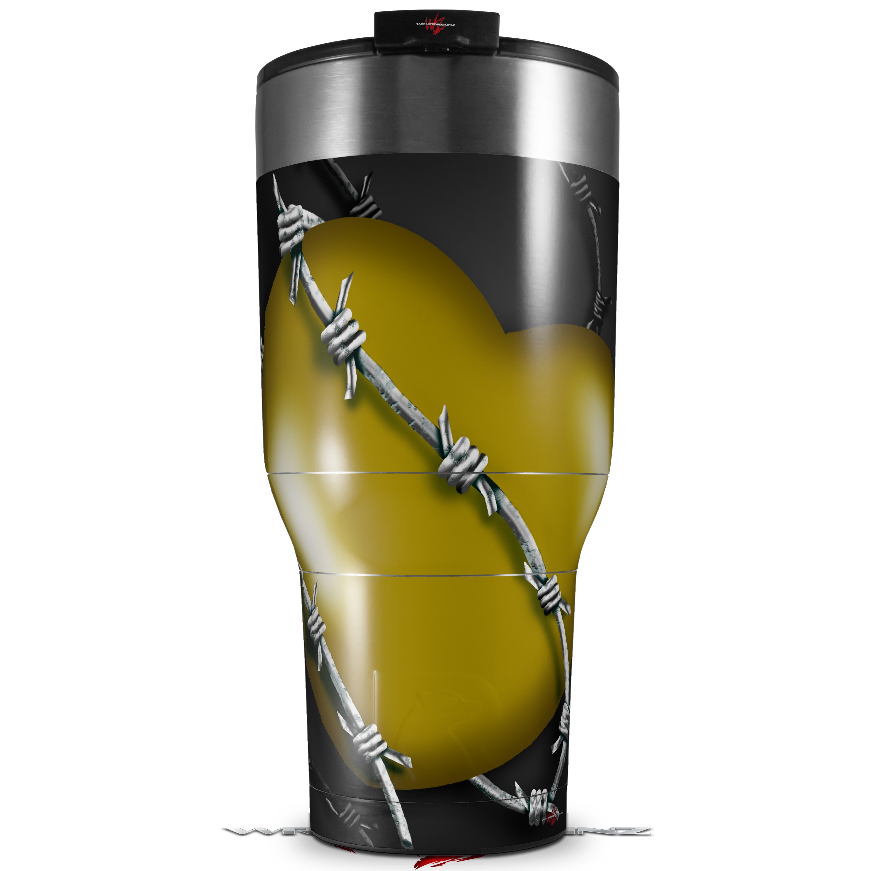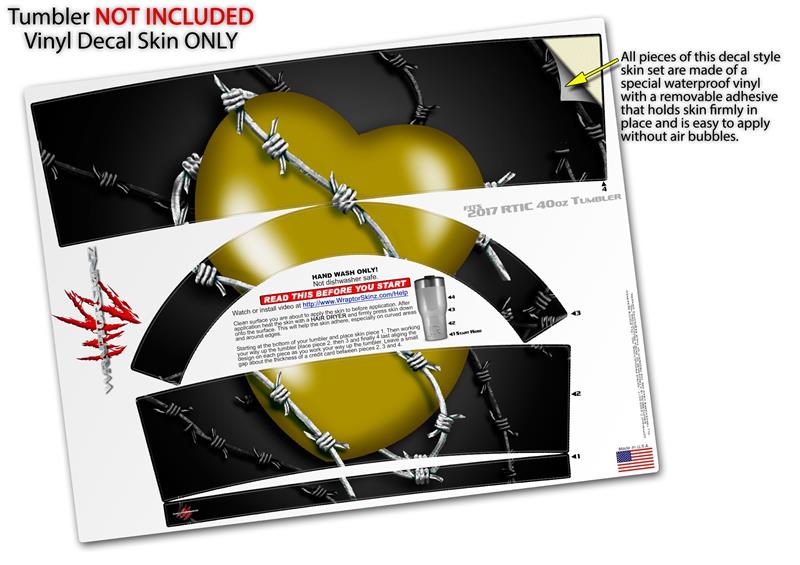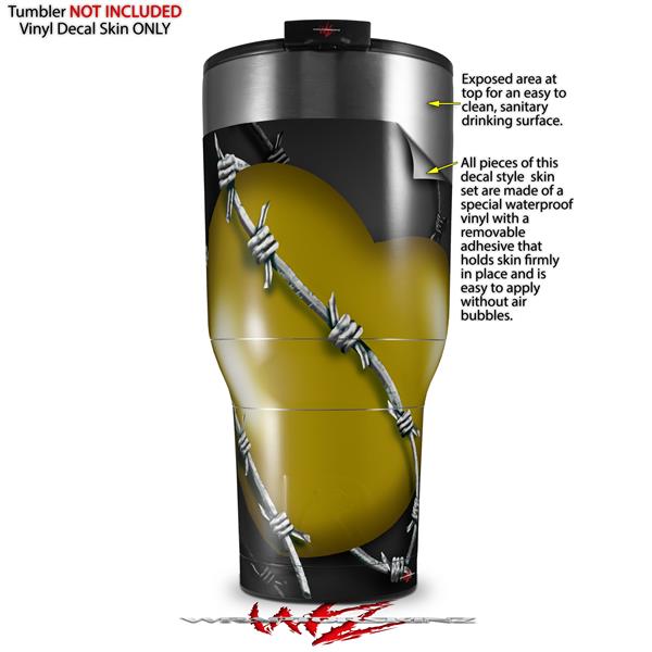 Skin Wrap Decal for 2017 RTIC Tumblers 40oz Barbwire Heart Yellow (TUMBLER NOT INCLUDED)