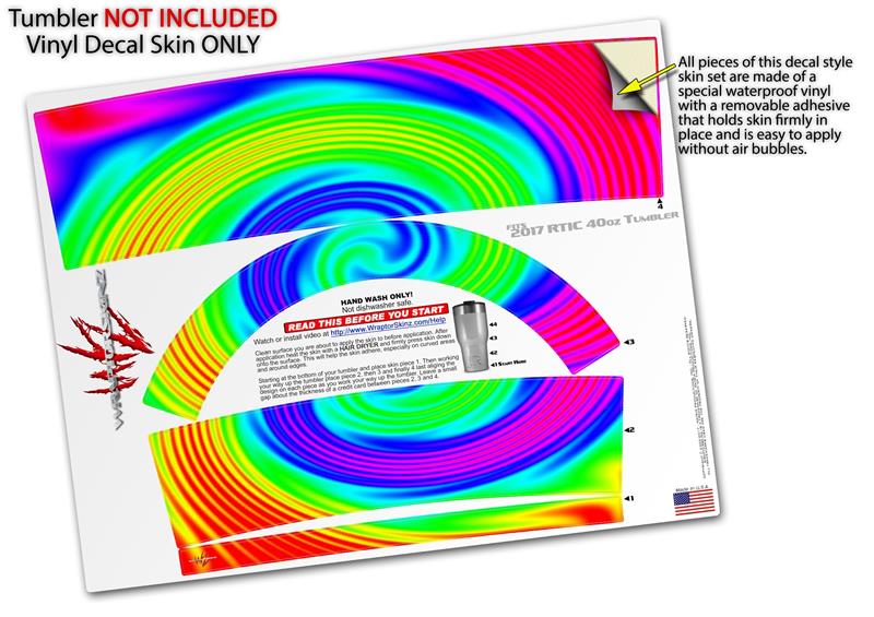 Skin Wrap Decal for 2017 RTIC Tumblers 40oz Rainbow Swirl (TUMBLER NOT INCLUDED)