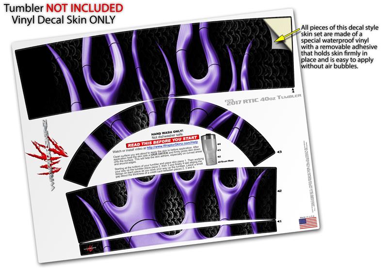 Skin Wrap Decal for 2017 RTIC Tumblers 40oz Metal Flames Purple (TUMBLER NOT INCLUDED)