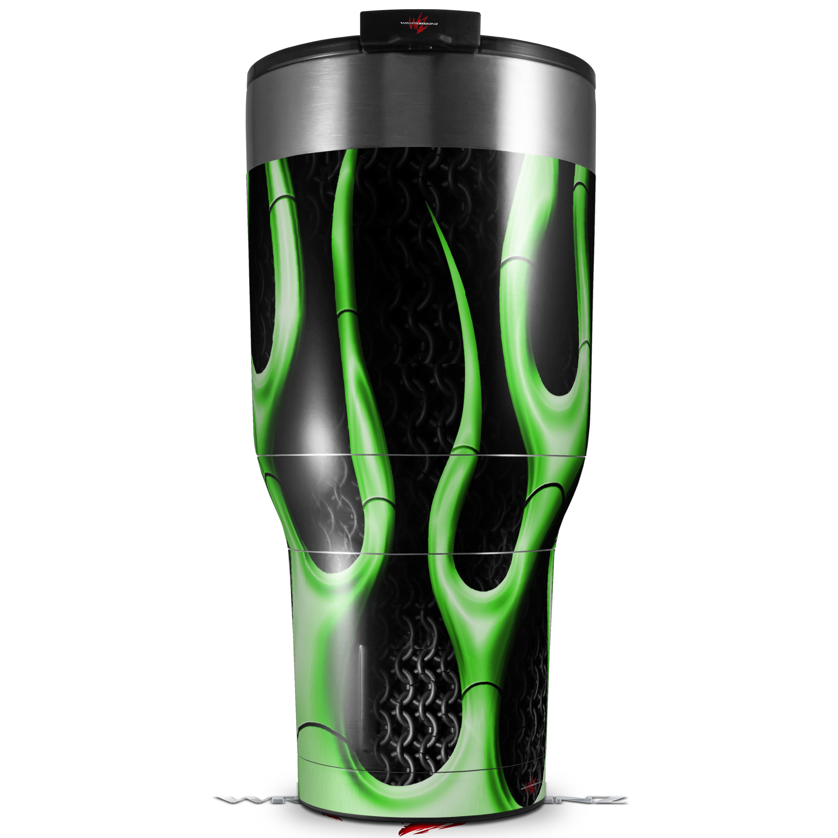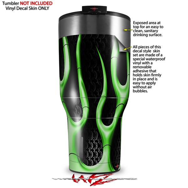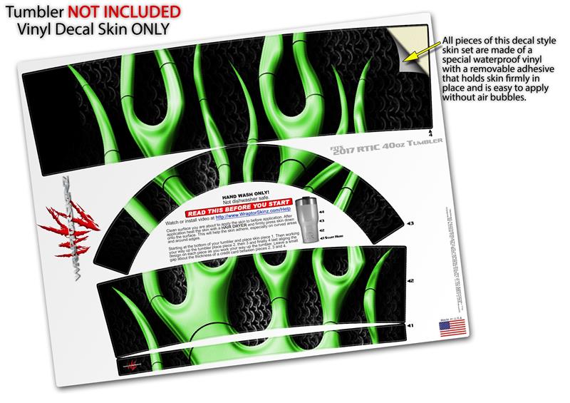 Skin Wrap Decal for 2017 RTIC Tumblers 40oz Metal Flames Green (TUMBLER NOT INCLUDED)