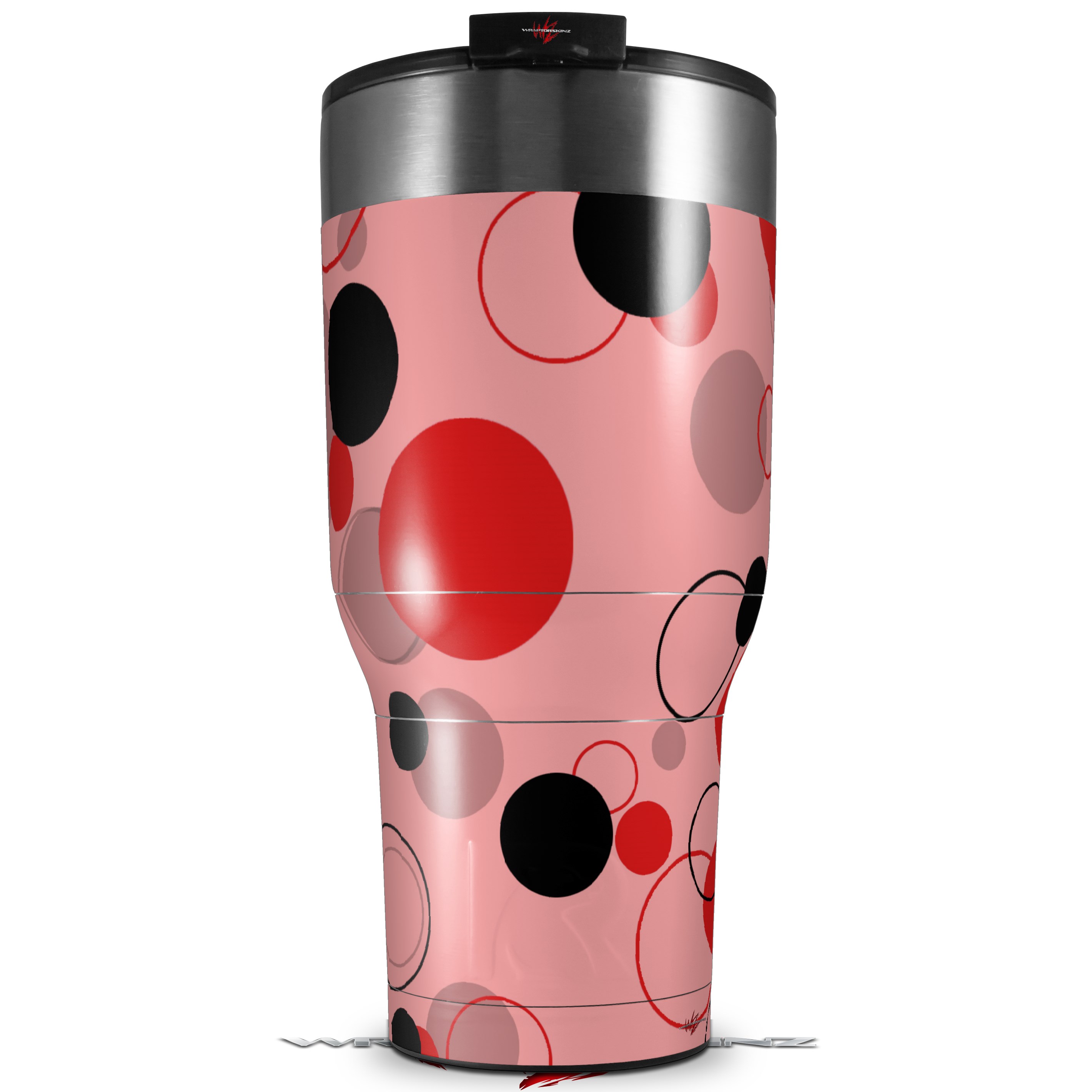 Skin Wrap Decal for 2017 RTIC Tumblers 40oz Lots of Dots Red on Pink (TUMBLER NOT INCLUDED)