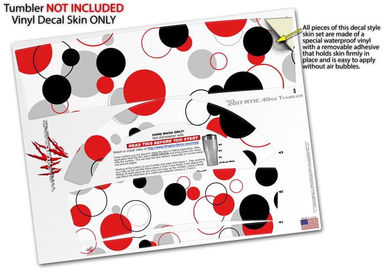 Skin Wrap Decal for 2017 RTIC Tumblers 40oz Lots of Dots Red on White (TUMBLER NOT INCLUDED)