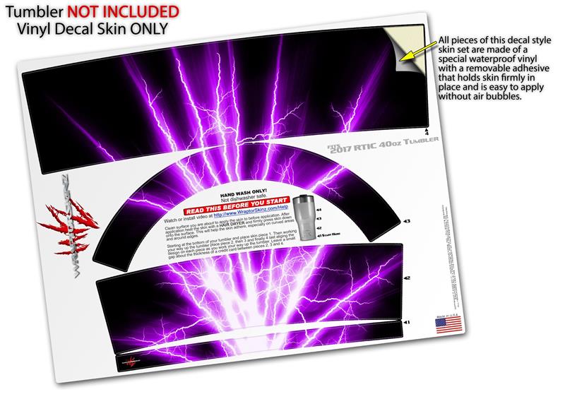 Skin Wrap Decal for 2017 RTIC Tumblers 40oz Lightning Purple (TUMBLER NOT INCLUDED)