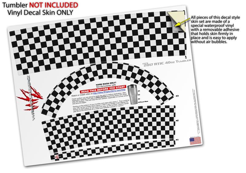Skin Wrap Decal for 2017 RTIC Tumblers 40oz Checkered Canvas Black and White (TUMBLER NOT INCLUDED)