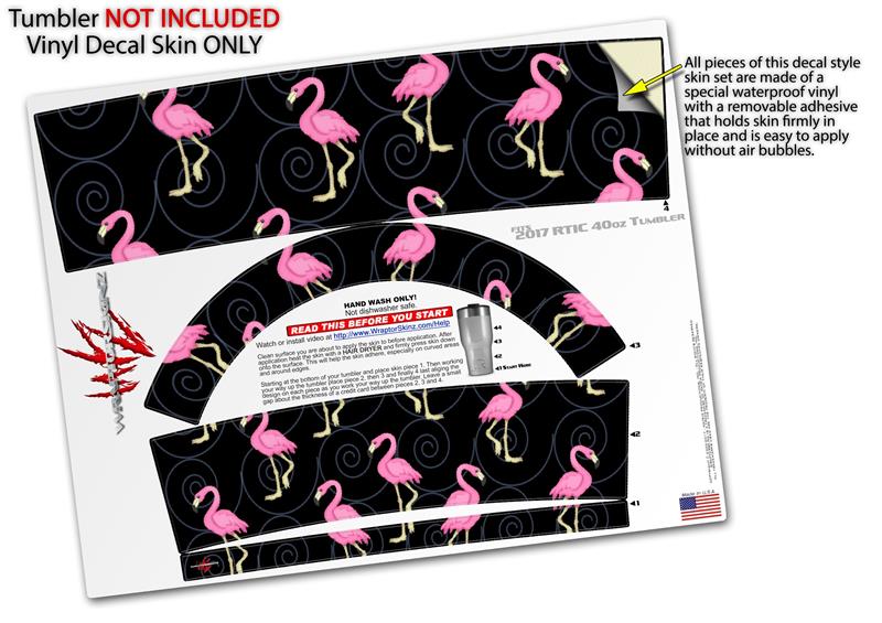 Skin Wrap Decal for 2017 RTIC Tumblers 40oz Flamingos on Black (TUMBLER NOT INCLUDED)