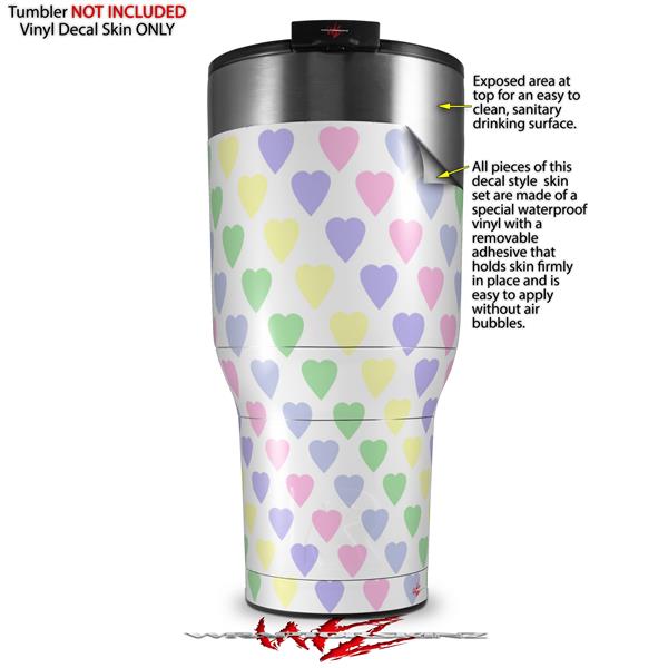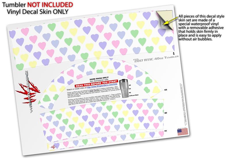 Skin Wrap Decal for 2017 RTIC Tumblers 40oz Pastel Hearts on White (TUMBLER NOT INCLUDED)