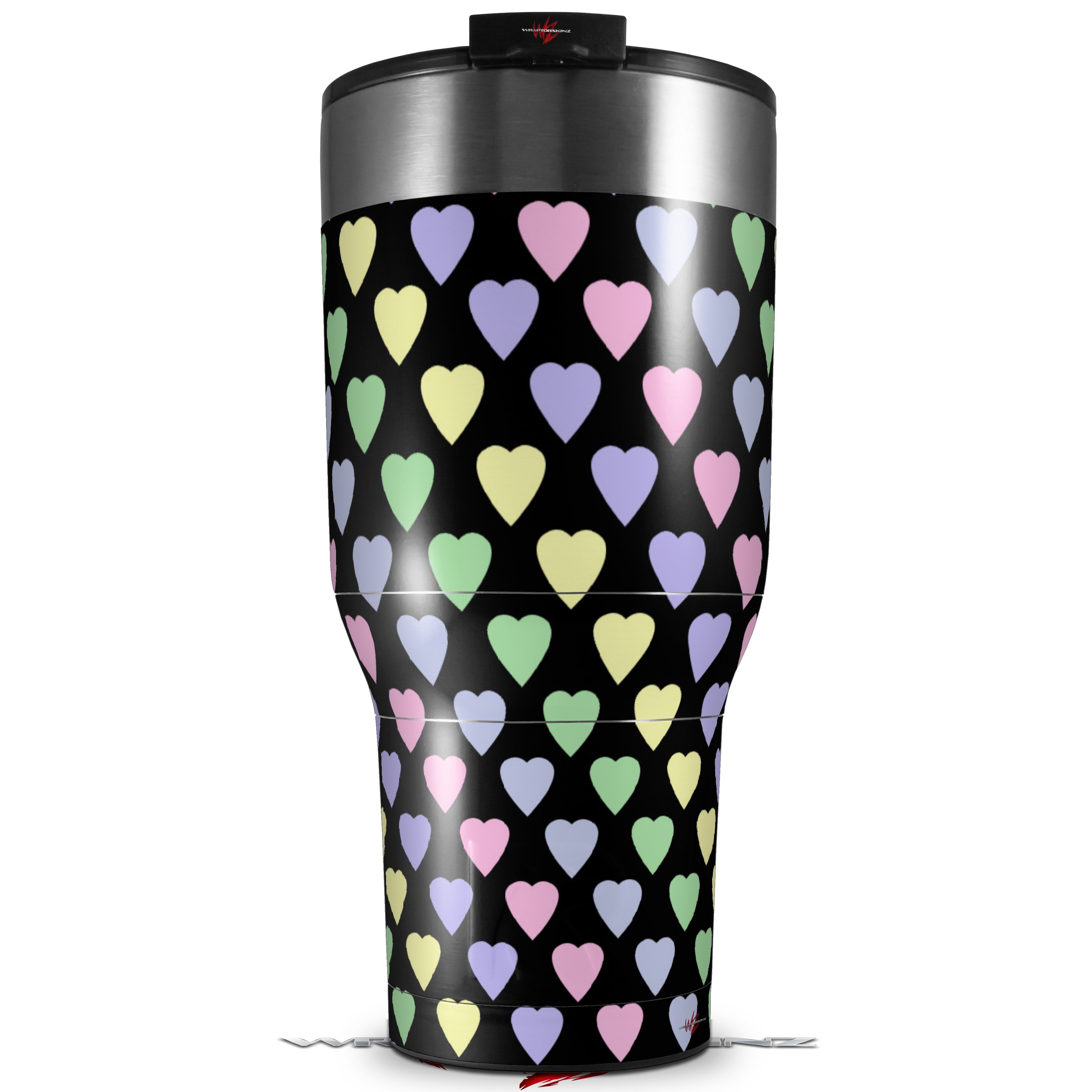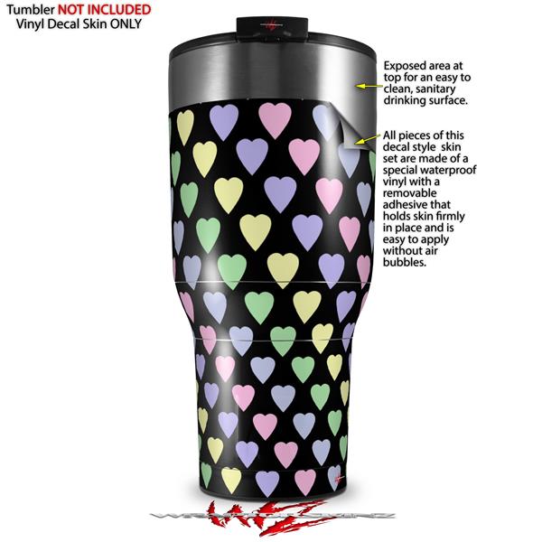 Skin Wrap Decal for 2017 RTIC Tumblers 40oz Pastel Hearts on Black (TUMBLER NOT INCLUDED)