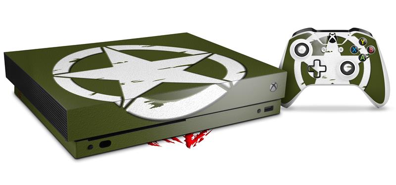 Skin Wrap compatible with XBOX One X Console and Controller Distressed Army Star