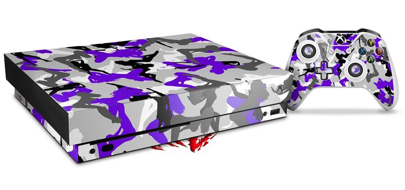 Skin Wrap compatible with XBOX One X Console and Controller Sexy Girl Silhouette Camo Purple