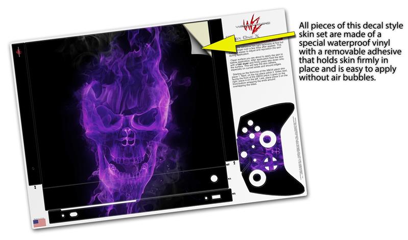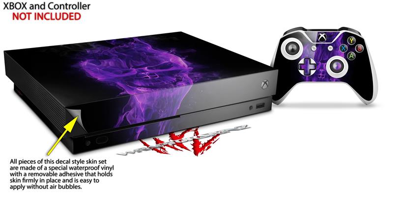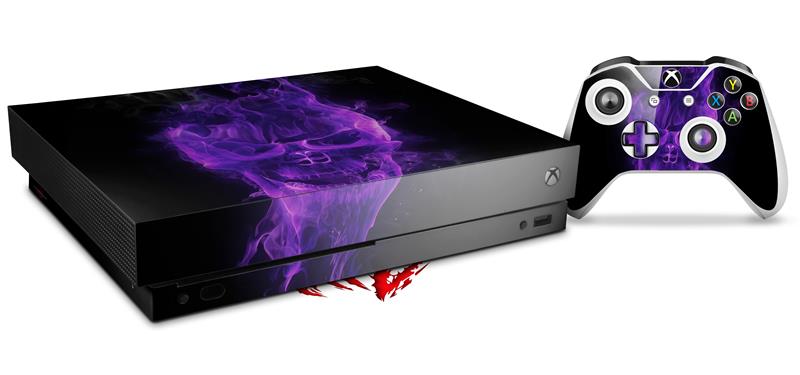 Skin Wrap compatible with XBOX One X Console and Controller Flaming Fire Skull Purple