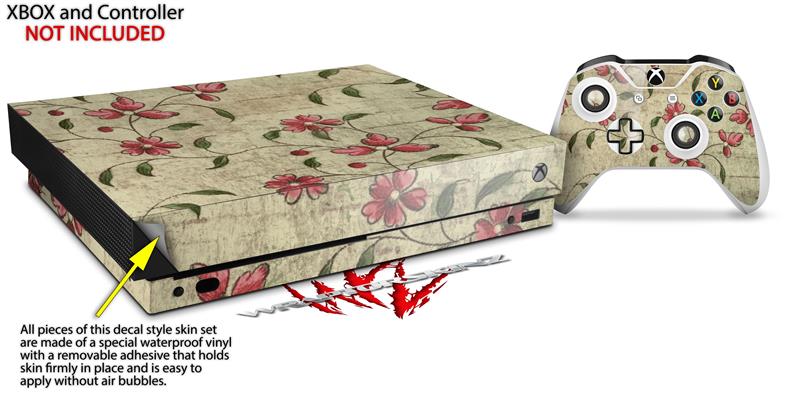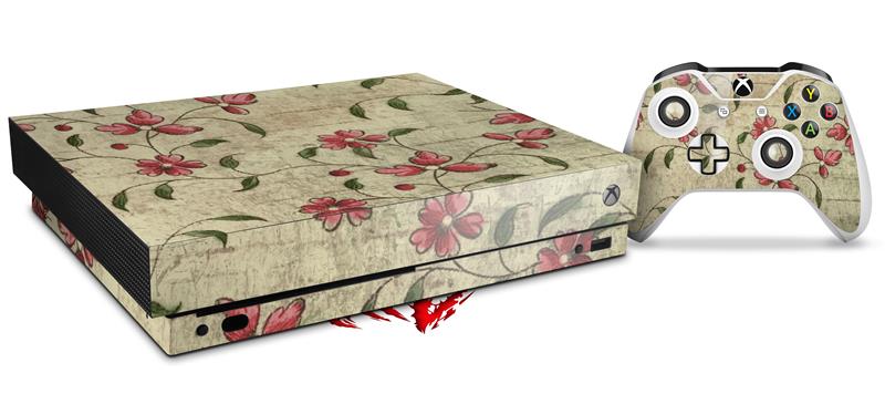 Skin Wrap compatible with XBOX One X Console and Controller Flowers and Berries Red