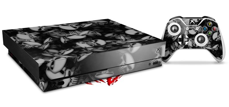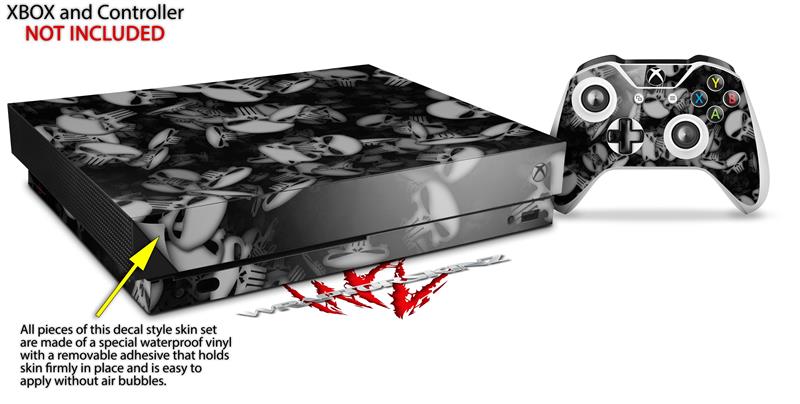 Skin Wrap compatible with XBOX One X Console and Controller Skulls Confetti White