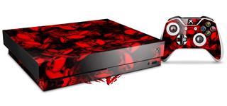 Skin Wrap compatible with XBOX One X Console and Controller Skulls Confetti Red