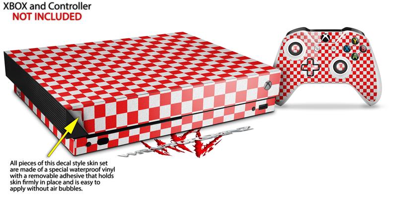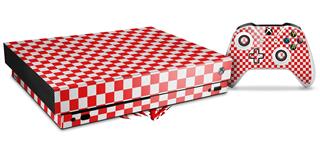 Skin Wrap compatible with XBOX One X Console and Controller Checkered Canvas Red and White