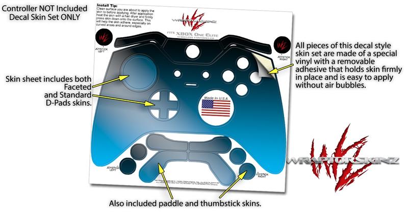 Smooth Fades Neon Blue Black - Decal Style Skin fits Microsoft XBOX One ELITE Wireless Controller (CONTROLLER NOT INCLUDED)