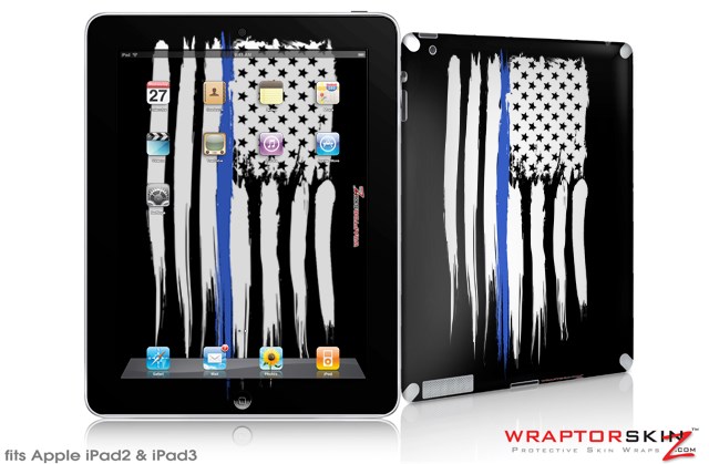 iPad Skin Brushed USA American Flag Blue Line (fits iPad 2 through iPad 4)