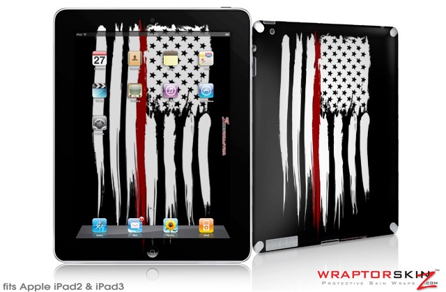 iPad Skin Brushed USA American Flag Red Line (fits iPad 2 through iPad 4)