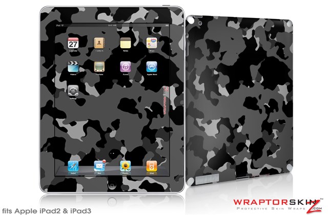 iPad Skin WraptorCamo Old School Camouflage Camo Black (fits iPad 2 through iPad 4)