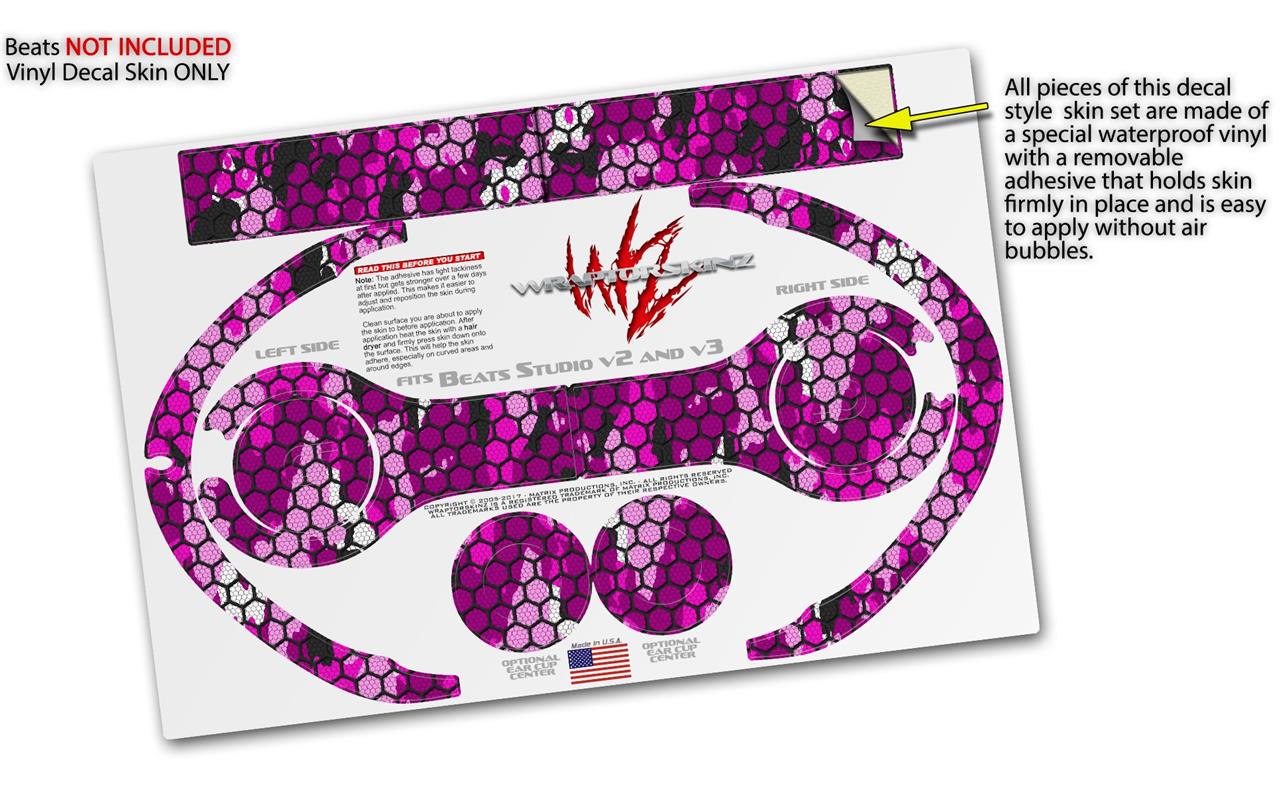 WraptorSkinz Skin Decal Wrap compatible with Beats Studio 2 and 3 Wired and Wireless Headphones HEX Mesh Camo 01 Pink Skin Only HEADPHONES NOT INCLUDED