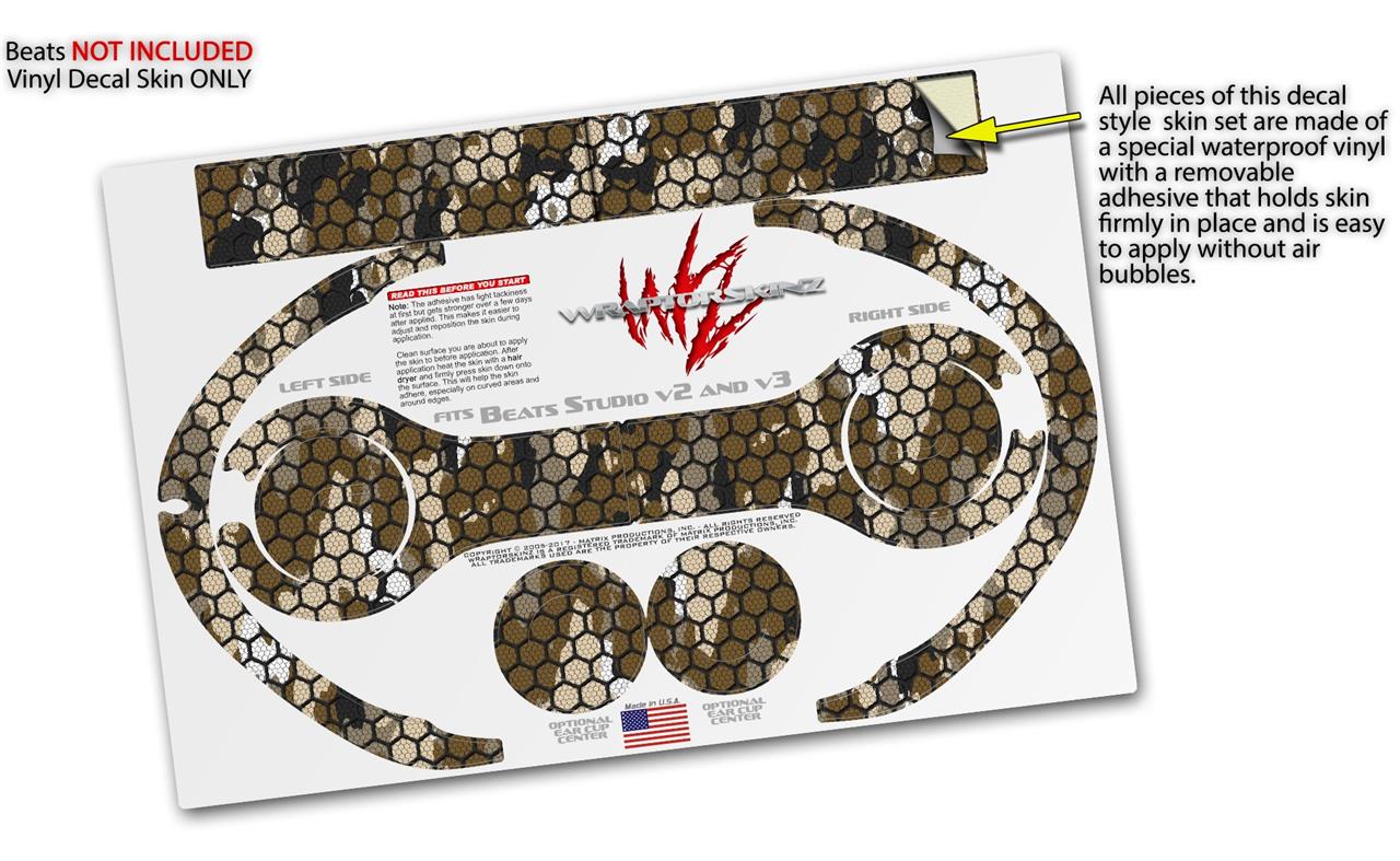 WraptorSkinz Skin Decal Wrap compatible with Beats Studio 2 and 3 Wired and Wireless Headphones HEX Mesh Camo 01 Brown Skin Only HEADPHONES NOT INCLUDED