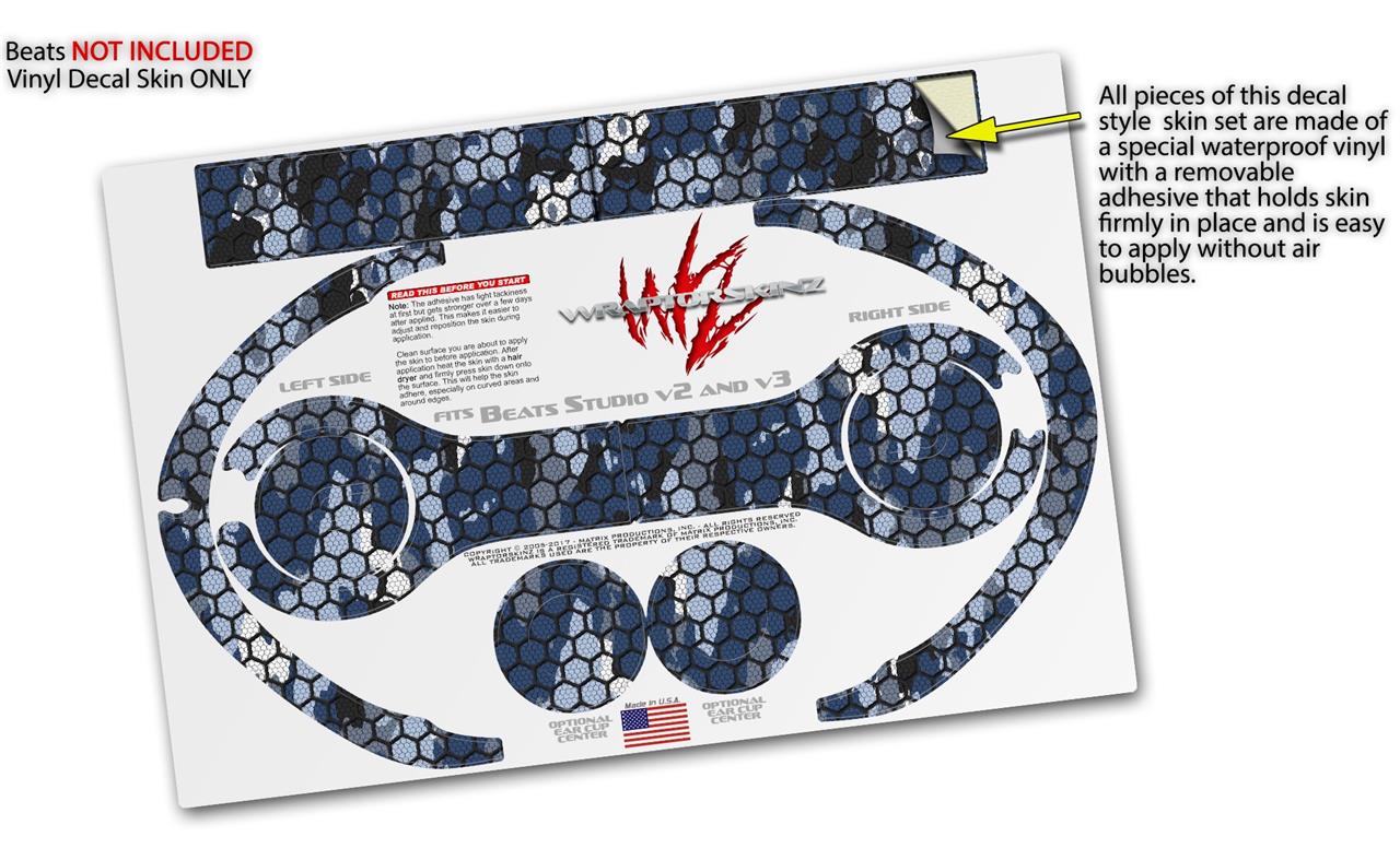 WraptorSkinz Skin Decal Wrap compatible with Beats Studio 2 and 3 Wired and Wireless Headphones HEX Mesh Camo 01 Blue Skin Only HEADPHONES NOT INCLUDED
