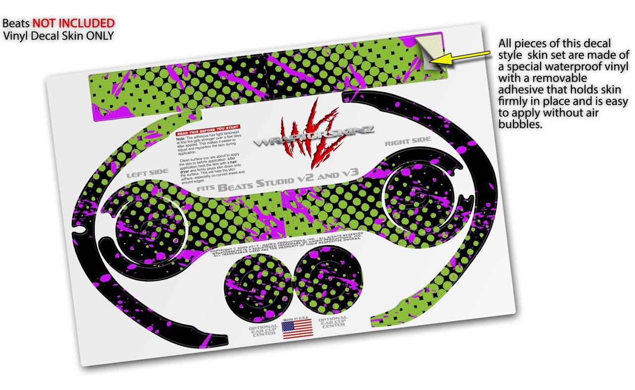 WraptorSkinz Skin Decal Wrap compatible with Beats Studio 2 and 3 Wired and Wireless Headphones Halftone Splatter Hot Pink Green Skin Only HEADPHONES NOT INCLUDED