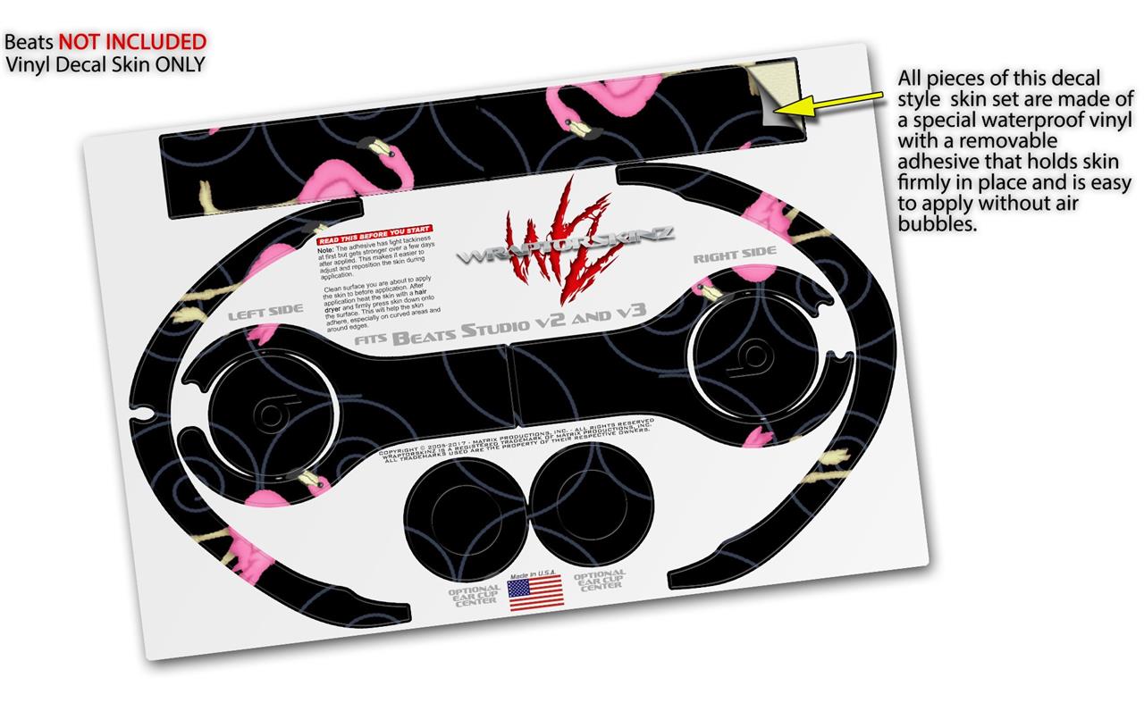 WraptorSkinz Skin Decal Wrap compatible with Beats Studio 2 and 3 Wired and Wireless Headphones Flamingos on Black Skin Only HEADPHONES NOT INCLUDED