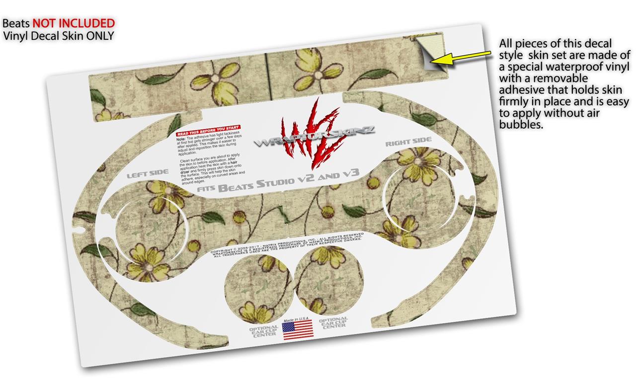 WraptorSkinz Skin Decal Wrap compatible with Beats Studio 2 and 3 Wired and Wireless Headphones Flowers and Berries Yellow Skin Only HEADPHONES NOT INCLUDED