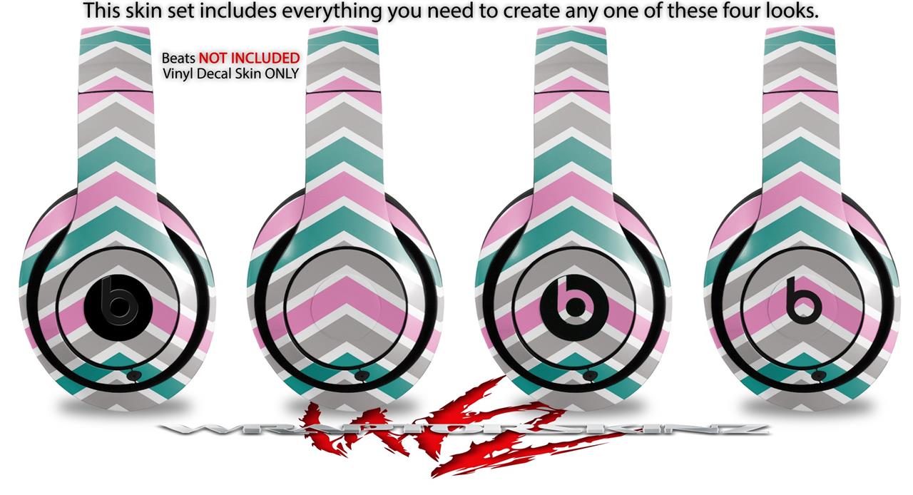 WraptorSkinz Skin Decal Wrap compatible with Beats Studio 2 and 3 Wired and Wireless Headphones Zig Zag Teal Pink and Gray Skin Only HEADPHONES NOT INCLUDED