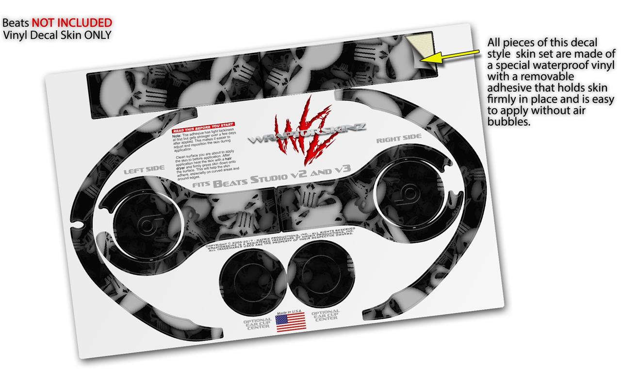 WraptorSkinz Skin Decal Wrap compatible with Beats Studio 2 and 3 Wired and Wireless Headphones Skulls Confetti White Skin Only HEADPHONES NOT INCLUDED