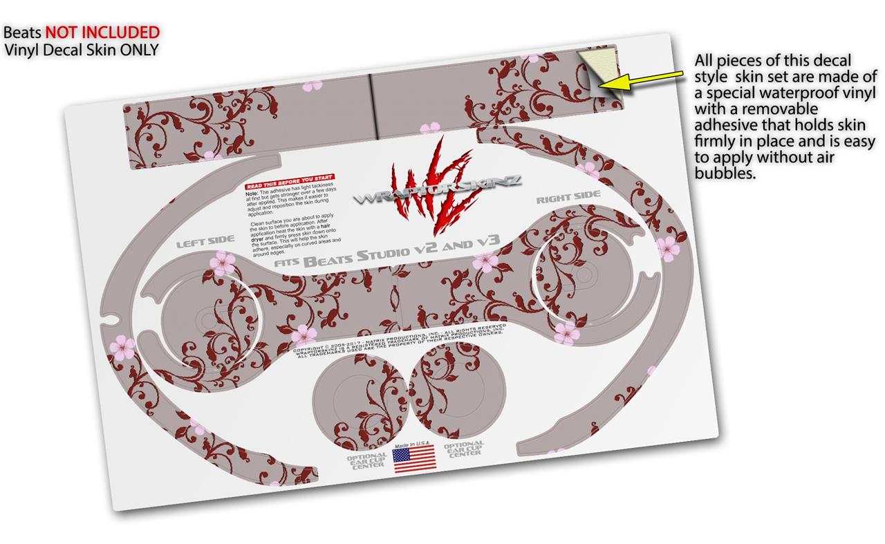 WraptorSkinz Skin Decal Wrap compatible with Beats Studio 2 and 3 Wired and Wireless Headphones Victorian Design Red Skin Only HEADPHONES NOT INCLUDED