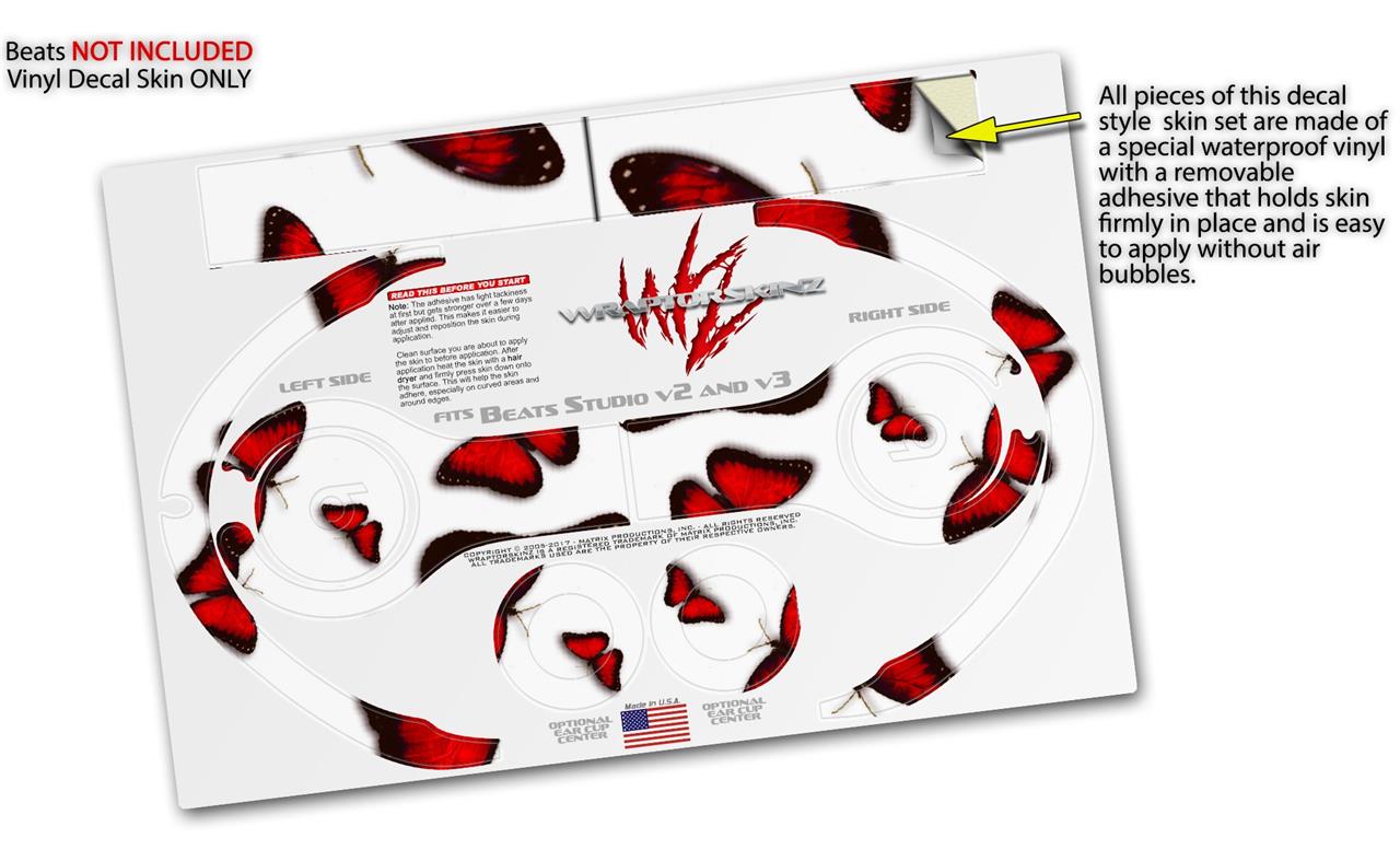 WraptorSkinz Skin Decal Wrap compatible with Beats Studio 2 and 3 Wired and Wireless Headphones Butterflies Red Skin Only HEADPHONES NOT INCLUDED