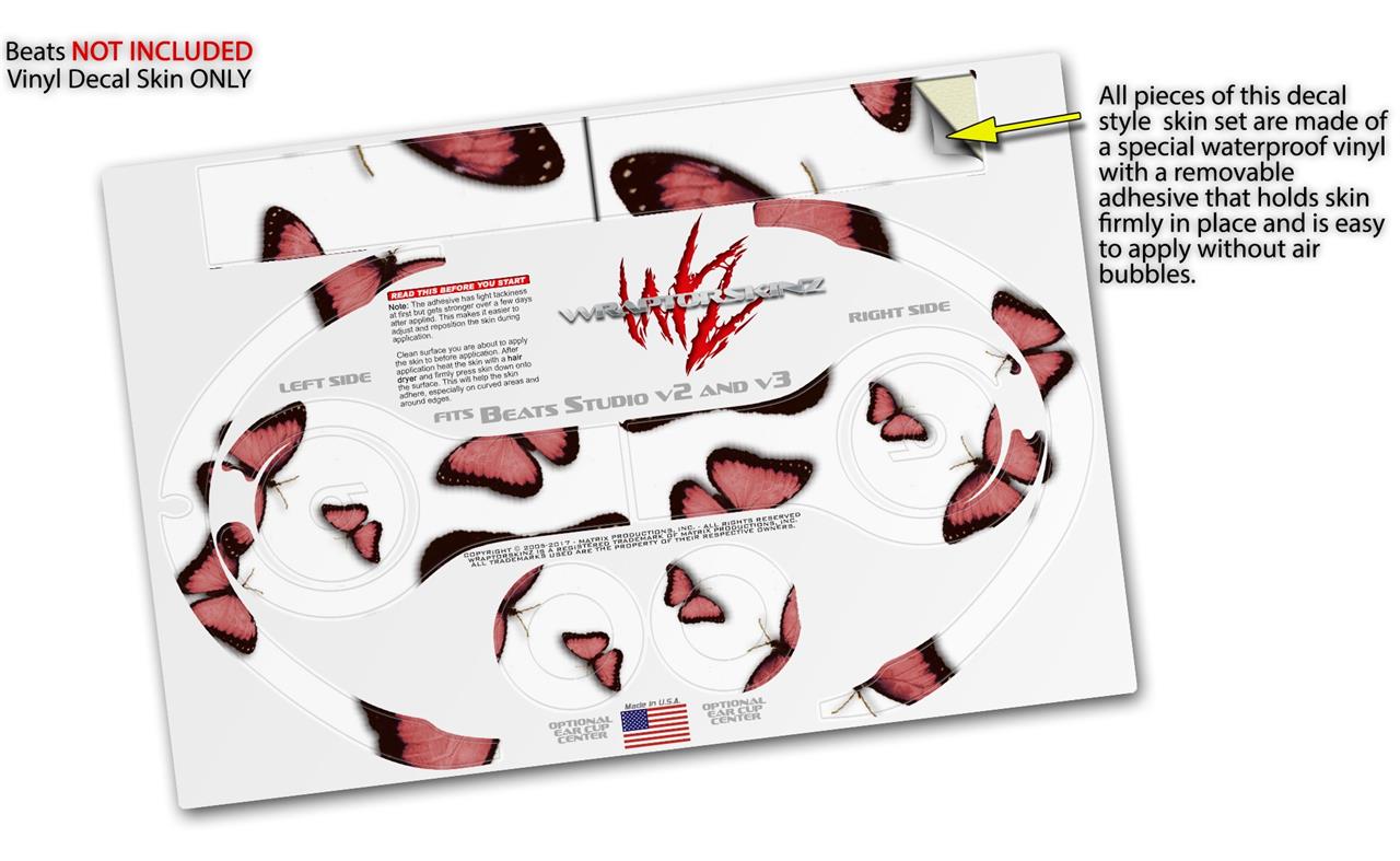 WraptorSkinz Skin Decal Wrap compatible with Beats Studio 2 and 3 Wired and Wireless Headphones Butterflies Pink Skin Only HEADPHONES NOT INCLUDED