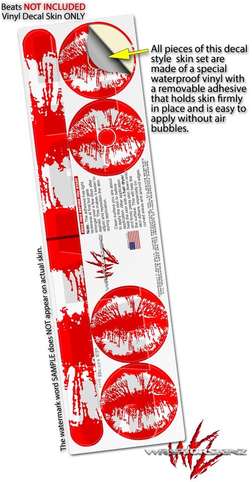WraptorSkinz Skin Decal Wrap compatible with Beats EP Headphones Big Kiss Lips White on Red Skin Only HEADPHONES NOT INCLUDED