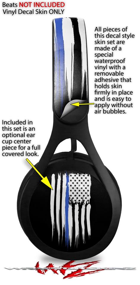 WraptorSkinz Skin Decal Wrap compatible with Beats EP Headphones Brushed USA American Flag Blue Line Skin Only HEADPHONES NOT INCLUDED