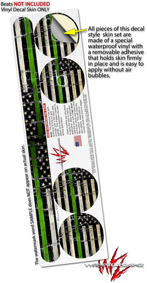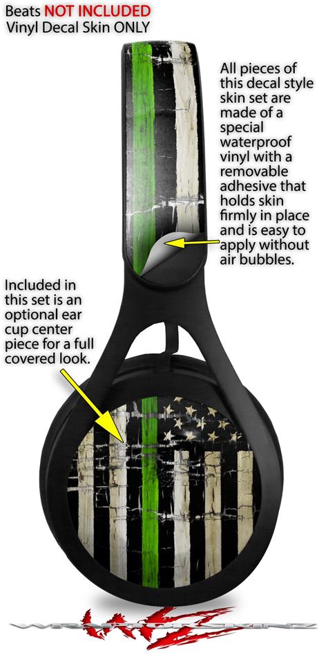 WraptorSkinz Skin Decal Wrap compatible with Beats EP Headphones Painted Faded and Cracked Green Line USA American Flag Skin Only HEADPHONES NOT INCLUDED