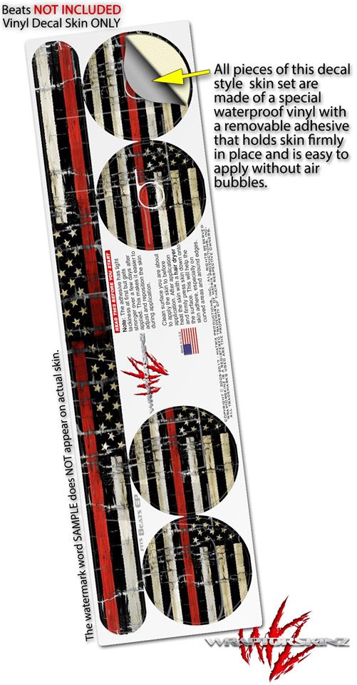 WraptorSkinz Skin Decal Wrap compatible with Beats EP Headphones Painted Faded and Cracked Red Line USA American Flag Skin Only HEADPHONES NOT INCLUDED