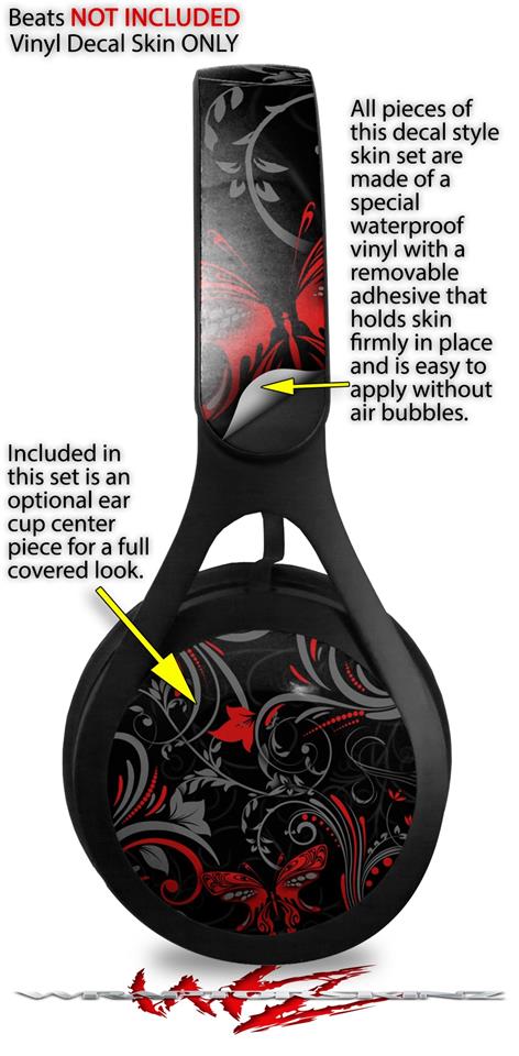 WraptorSkinz Skin Decal Wrap compatible with Beats EP Headphones Twisted Garden Gray and Red Skin Only HEADPHONES NOT INCLUDED