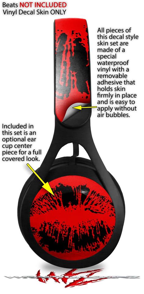 WraptorSkinz Skin Decal Wrap compatible with Beats EP Headphones Big Kiss Lips Black on Red Skin Only HEADPHONES NOT INCLUDED