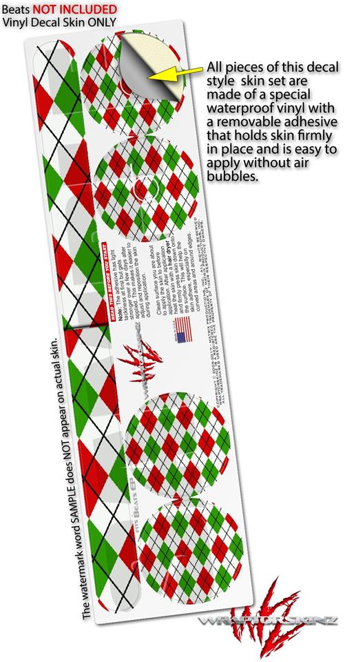 WraptorSkinz Skin Decal Wrap compatible with Beats EP Headphones Argyle Red and Green Skin Only HEADPHONES NOT INCLUDED