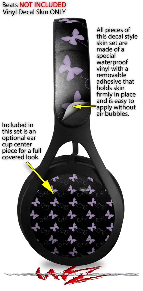 WraptorSkinz Skin Decal Wrap compatible with Beats EP Headphones Pastel Butterflies Purple on Black Skin Only HEADPHONES NOT INCLUDED