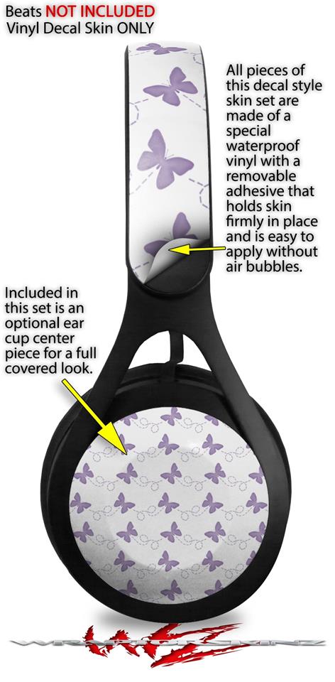 WraptorSkinz Skin Decal Wrap compatible with Beats EP Headphones Pastel Butterflies Purple on White Skin Only HEADPHONES NOT INCLUDED