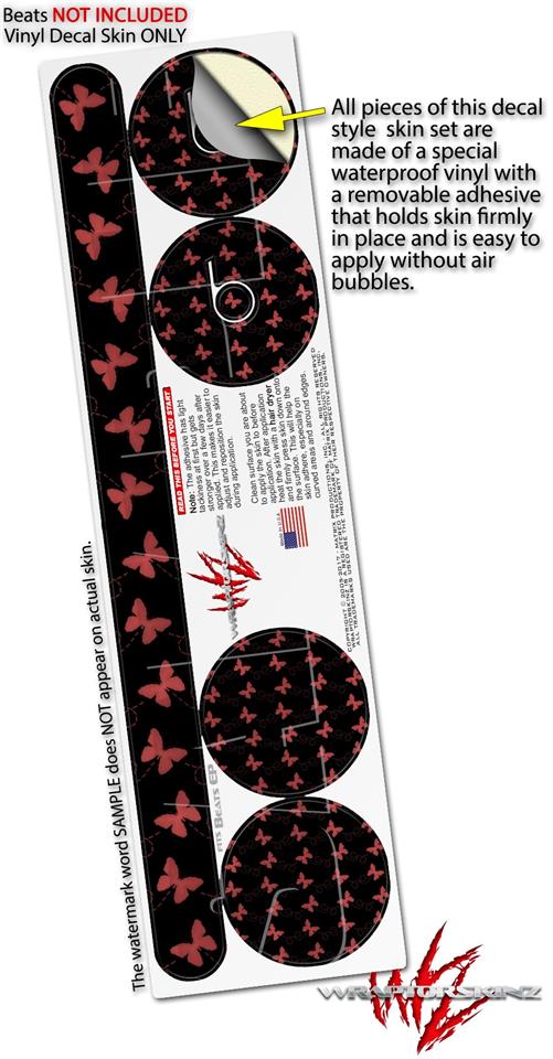 WraptorSkinz Skin Decal Wrap compatible with Beats EP Headphones Pastel Butterflies Red on Black Skin Only HEADPHONES NOT INCLUDED