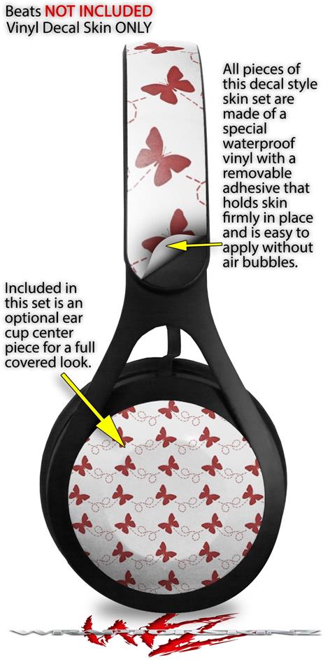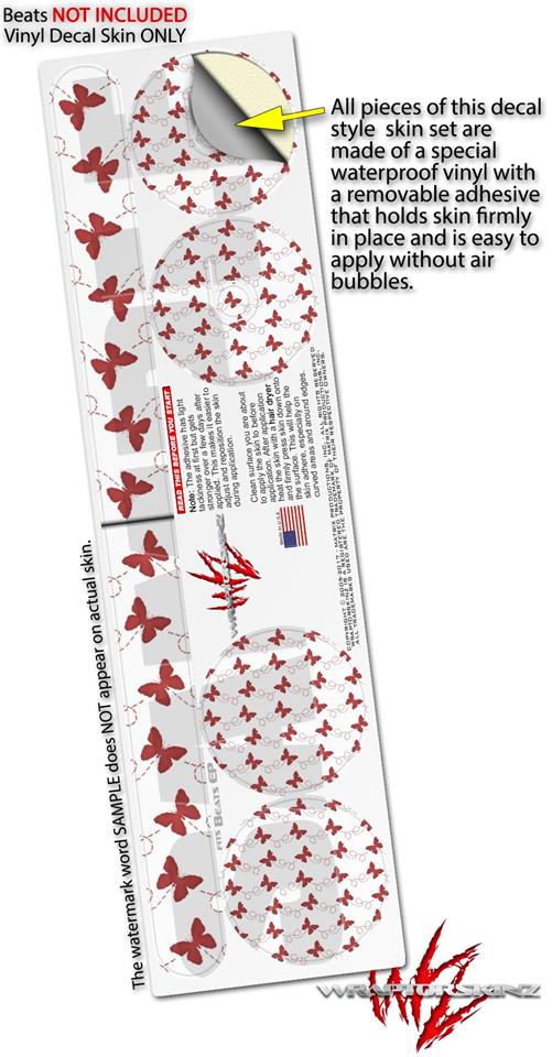 WraptorSkinz Skin Decal Wrap compatible with Beats EP Headphones Pastel Butterflies Red on White Skin Only HEADPHONES NOT INCLUDED