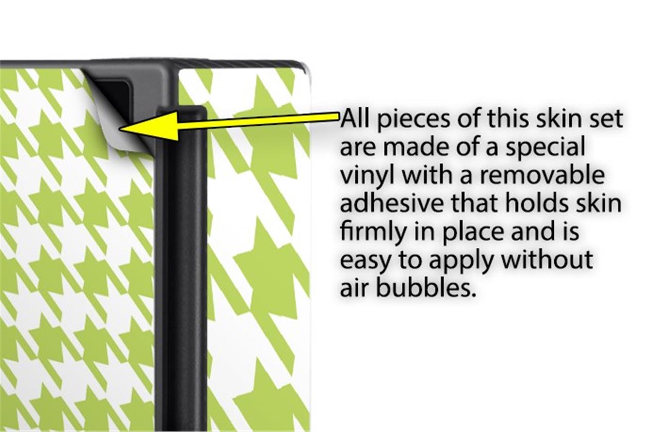 WraptorSkinz® skins are superb photo quality designs and vibrant colors printed with special Eco-Friendly, fade resistant inks. Our skins are self-adhering flexible vinyl skins that helps prevent scratches. Made of composite, multi-layered commercial grade materials. The bottom layer is made with a special removable adhesive that is easily positioned and applied without air bubbles. We print your design on the bottom layer then bond a professional grade laminate over the entire skin adding a glossy protective finish.