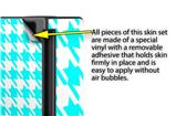 WraptorSkinz® skins are superb photo quality designs and vibrant colors printed with special Eco-Friendly, fade resistant inks. Our skins are self-adhering flexible vinyl skins that helps prevent scratches. Made of composite, multi-layered commercial grade materials. The bottom layer is made with a special removable adhesive that is easily positioned and applied without air bubbles. We print your design on the bottom layer then bond a professional grade laminate over the entire skin adding a glossy protective finish.