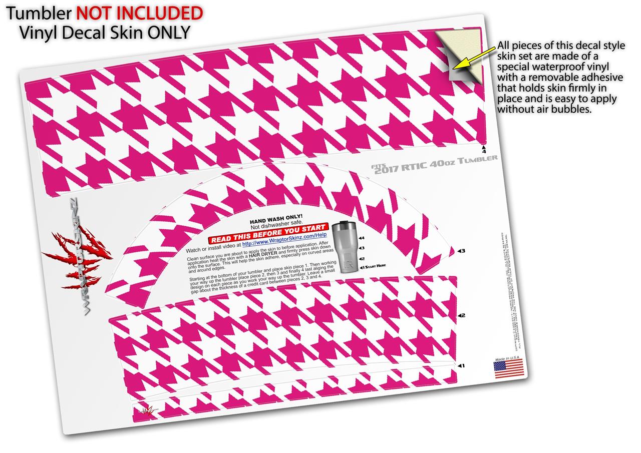 Skin Wrap Decal for 2017 RTIC Tumblers 40oz Houndstooth Hot Pink (TUMBLER NOT INCLUDED)