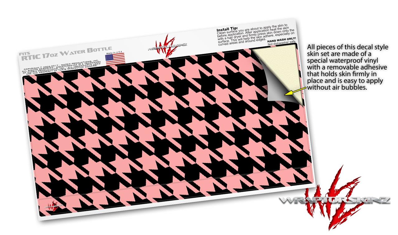 Skin Decal Wrap for RTIC Water Bottle 17oz Houndstooth Pink on Black (BOTTLE NOT INCLUDED)